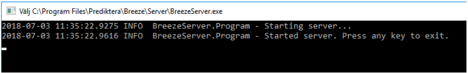 Files\Prediktera\Breeze\Runtime”. If the optional event server is used (see Event Stream), start “BreezeRuntime.exe /e” instead.