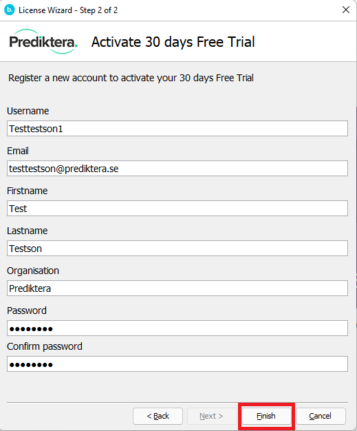Select “Activate 30 days Free Trial ” and press “Next”.