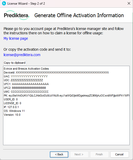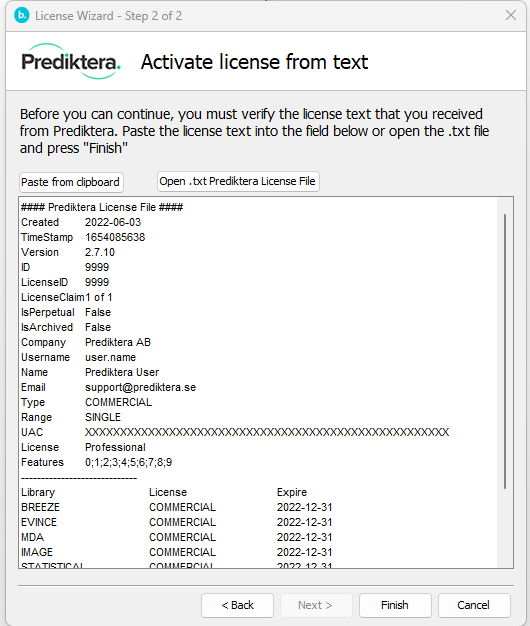 The license may be sent to you as a .txt file or as text in an email. Open the file received from Prediktera or copy the text received from Prediktera in the email.
