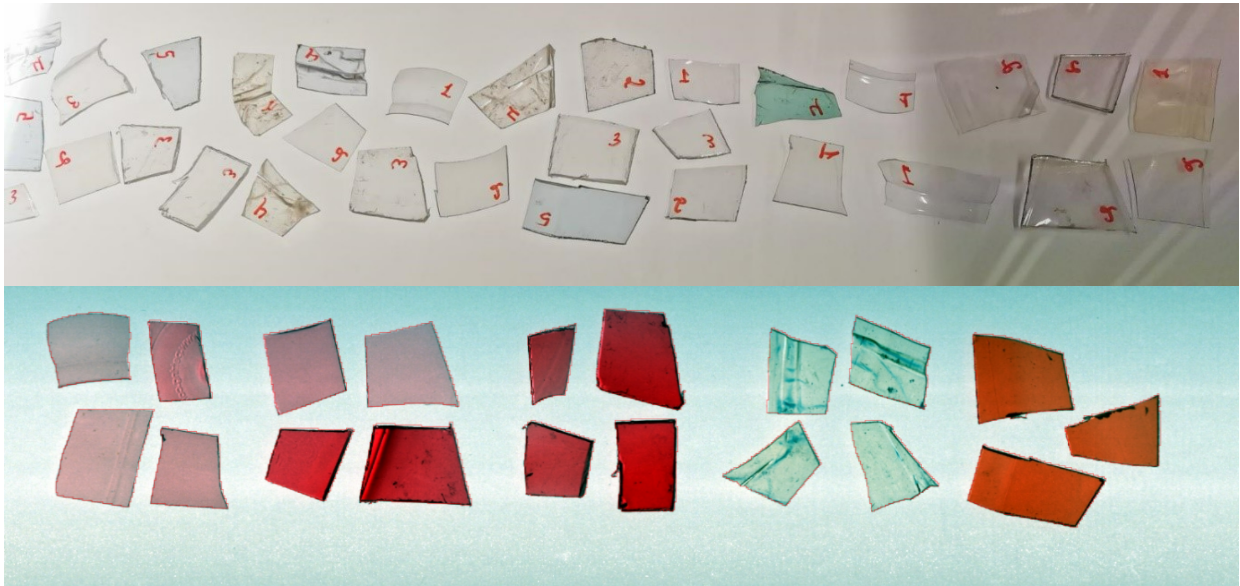 A normal RGB image of the plastic waste (top) and a SWIR-based false-color image (bottom)