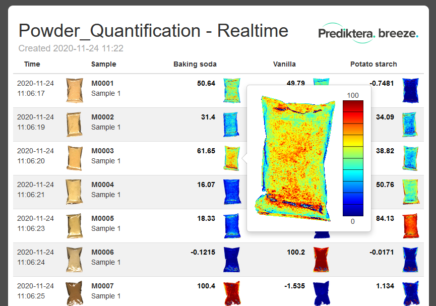 Click on a sample in the “Baking soda” column to color the preview image by the predicted values.