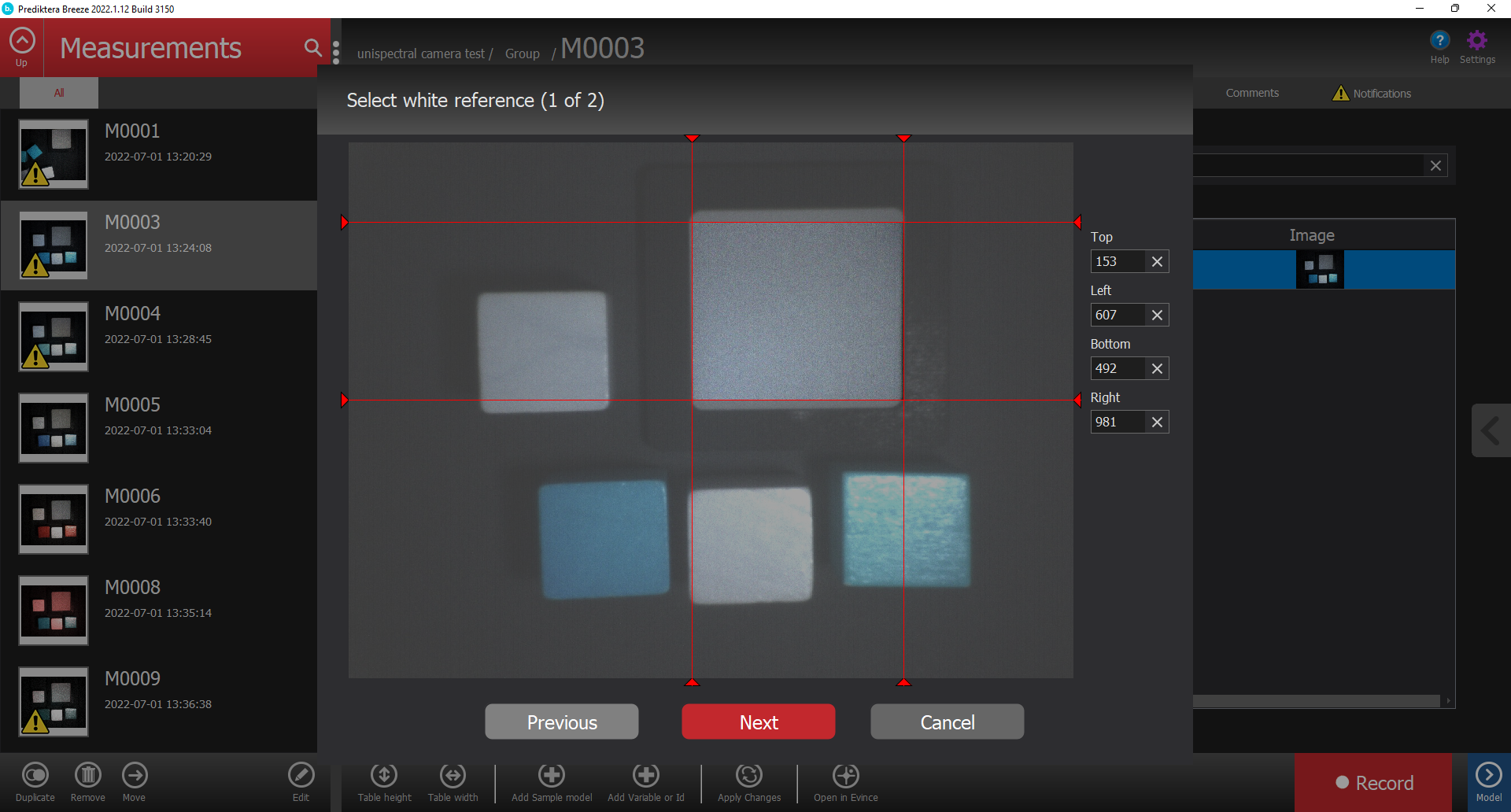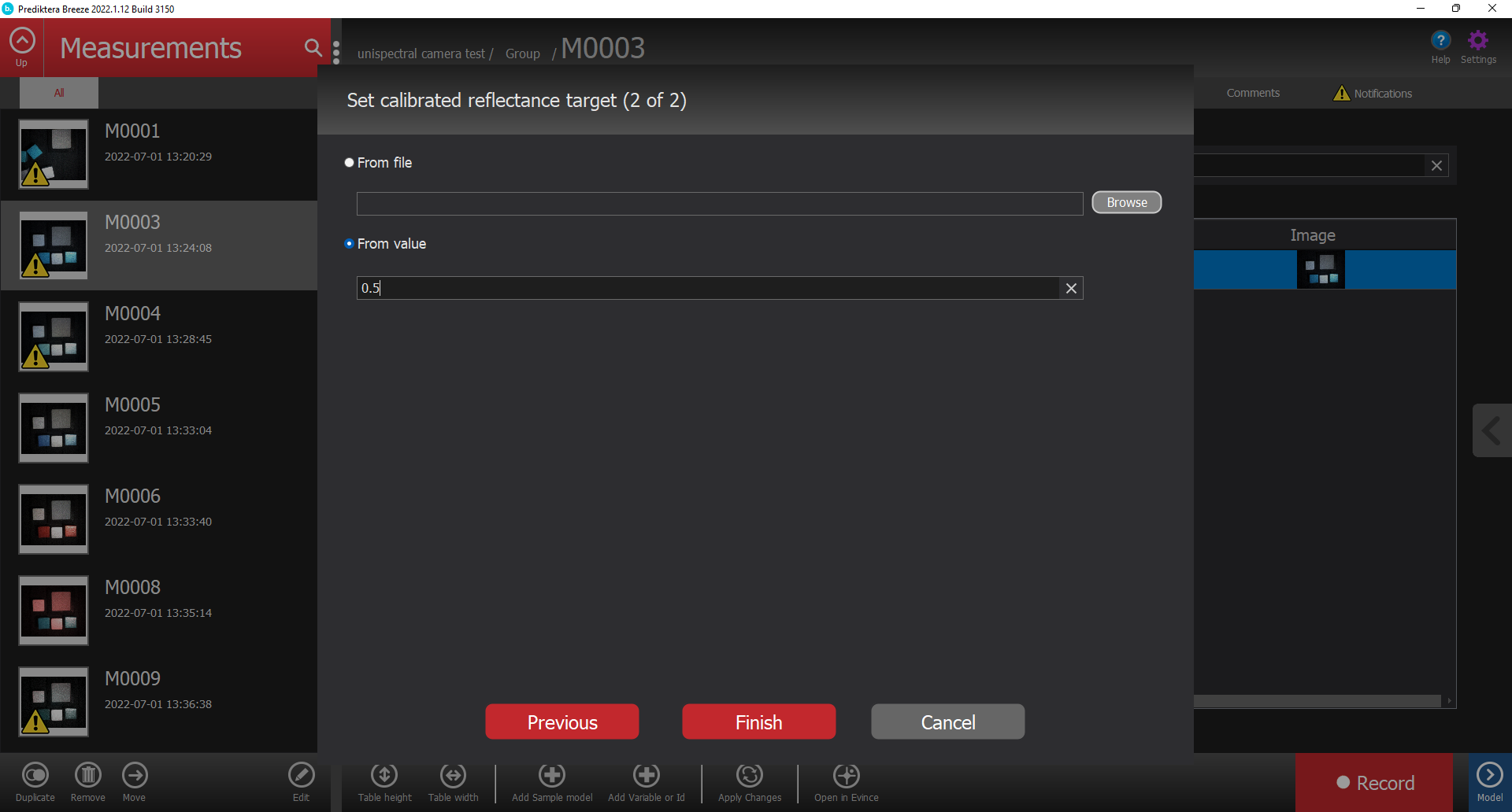 Here you can select the calibration of the white reference. For Unispectral select “From value” and select the % of the WR. the value should be between 0.0-1.0. Then press Finish.