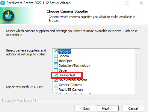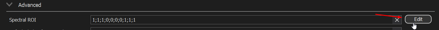 When the camera is connected you can make some advance settings changes, such as specifying a spectral region of interest, press the Edit button: