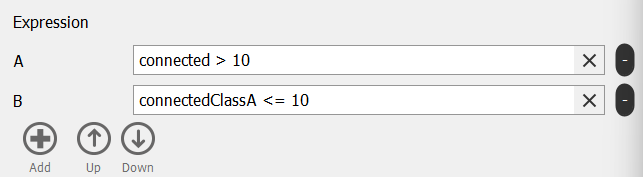 Number of connected pixels of Class A less or equal to 10 then expression will evaluate to class