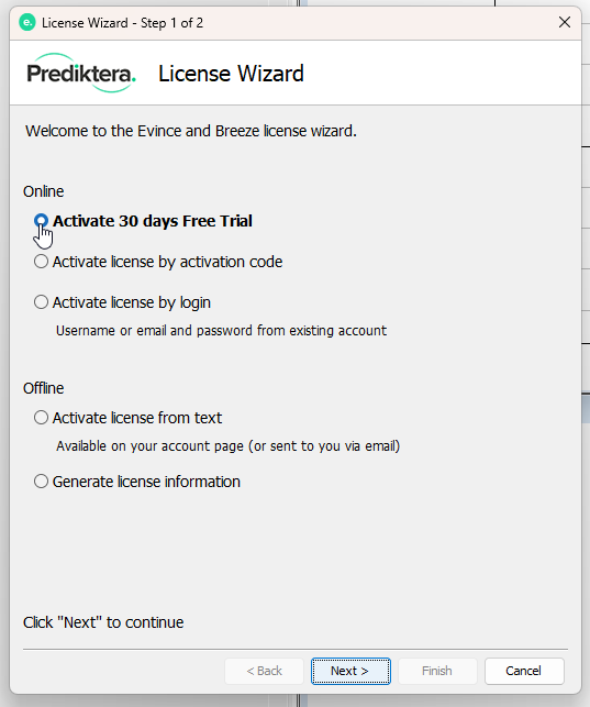 Select “Activate 30 days Free Trial ” and press “Next”.